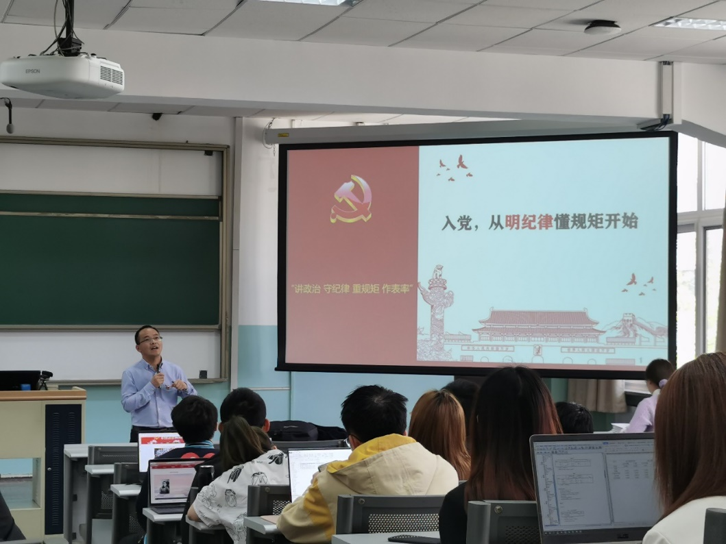 2021-04-30 文:黄色漫画 图:黄色漫画2021年4月28日下午两点,社会与人口学院第23期党校入党积极分子培训班第三次课在求是楼0224教室顺利进行。本次党课的主讲人是学院纪检委员巫锡炜老师,党课主题是“入党,从明纪律懂规矩开始”。