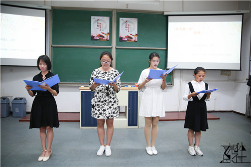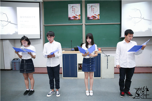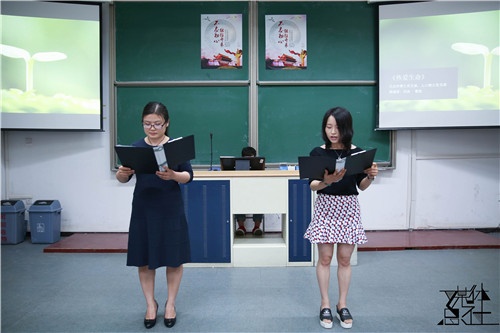 首先,由唐颖老师致辞。她表示:和歌之翼歌唱比赛一样,今年其实也是我们举办诗歌朗诵会的第十个年头,经过十年的摸索走到今天,充分说明我们的活动是有延续性,有生命力,有意义的。通过诗歌,我们回顾历史,继承传统,珍惜现在,放眼未来。希望我们每一位同学都能坚持自己最初的梦想,在实践和学习中不断开拓进取。