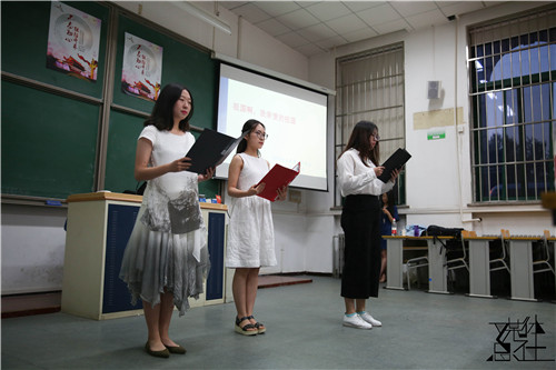 2017-06-03 文:黄色漫画 图:黄色漫画6月2日晚上7点,社会与人口学院一年一度的主题诗歌朗诵比赛在公共教学二楼2102举行。今年朗诵会的主题是”不忘初心·继往开来“。出席本次比赛的嘉宾有社会与人口学院党委副书记唐颖老师、学院分团委书记先虹锦老师 、党委学工部思想教育科刘峰老师、学院党务秘书唐诗雅老师以及本科非毕业班党支部书记杜姗姗。本次诗歌朗诵比赛由2016级本科生张捷、陈雪茹主持。