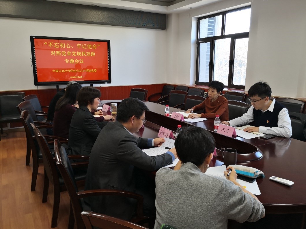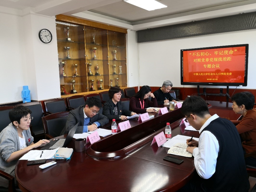社会与人口学院党委召开“不忘初心、牢记使命” 对照党章党规找差距专题会议