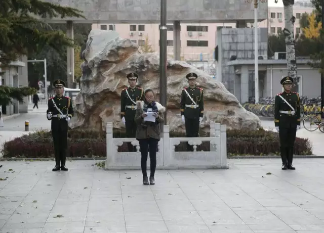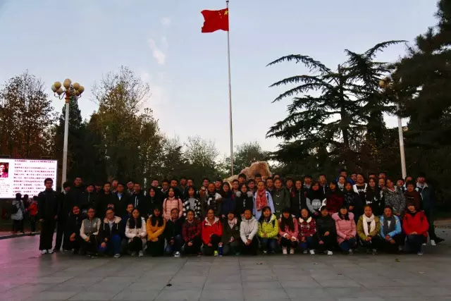 在国旗仪仗队队长的口号声中,升旗仪式就此落下帷幕。最后,同学们齐聚求是石下合影留念,一缕缕晨曦穿过树梢,拂过金黄的秋叶,打在同学们充满希望的面庞上,在这个寒冷的深秋之晨,大家的心中却是如此的充实与温暖。
