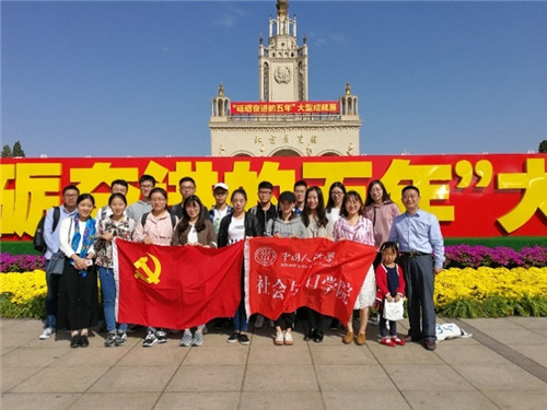 2017年10月14日下午,17级硕士人口、社会党支部及部分党员老师共同来到北京展览馆参观“砥砺奋进的五年”大型成就展,领略社会飞速发展、技术高度进步的时代特点,共同学习我党在社会主义建设新时期的先进经验。党委副书记兼副院长宋健教授也一同参加活动。