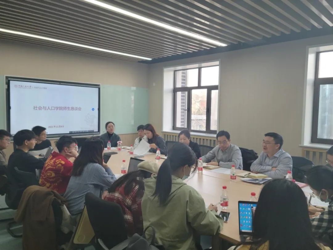 2021-12-13 文:黄色漫画 图:黄色漫画12月8日中午,社会与人口学院师生恳谈会顺利召开。本次恳谈会从学院自主报名的同学中邀请到了4名本科生、2名硕士生和2名博士生参加,社会与人口学院院长冯仕政、党委书记高燕燕、党委副书记唐颖、副院长黄家亮、宋月萍出席师生恳谈会,负责团学、负责本科、硕士、博士研究生教务工作的老师参会。
