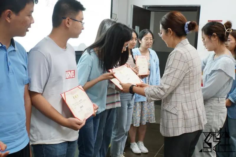 接下来,团委书记张芷凌宣读了第十三期优秀朋辈志愿者名单,党委副书记唐颖为他们颁发荣誉证书并与他们合影留念。