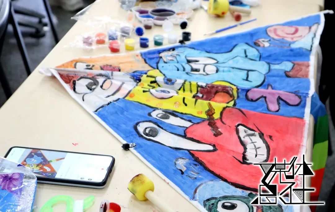 风筝节开始前,二十八个朋辈小组根据安排会聚在明商0204,领取风筝、零食、颜料与画笔。大小朋辈分工合作,在空白风筝上画出各样美丽图画。各种卡通形象、春天符号尽落笔端,给风筝赋予生命。