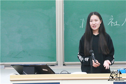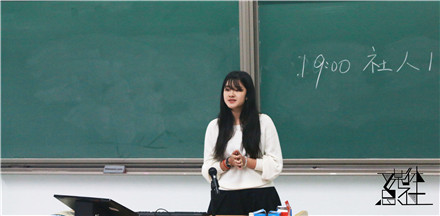 2016级新生们早早来到会议场地,积极参与这场会议。大会首先以上一届2015级的比赛视频开场,视频开头齐声呐喊“社人”的声音在同学们的脑海里久久回荡,令大家心神振奋,而接下来的合唱更是婉转动听,声声走进同学们的心里。视频结束后,现场响起了不断的掌声。