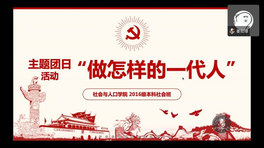 2018级本科社会学类3、4班团支部以腾讯会议为载体,积极策划了一堂阐述党的理论主张、具有鲜明价值导向、符合青年思想特点的微团课。在40名同学齐聚线上后,团支书首先邀请了班级内几名参与疫情服务的志愿者同学为大家分享了自己的“战疫”故事,之后又为大家播放了讲述3个在“做怎样的一代人”的问题上挣扎的青年最后迎来人生彩虹的青春励志视频,大家也结合自己的人生经历发表了感悟。这次团课用真人、真事和真情实感,让榜样精神真正在青年中入脑入心,使同学们坚定了以青春之我创青春之国家,为实现中华民族伟大复兴的中国梦而不懈奋斗的理想信念。