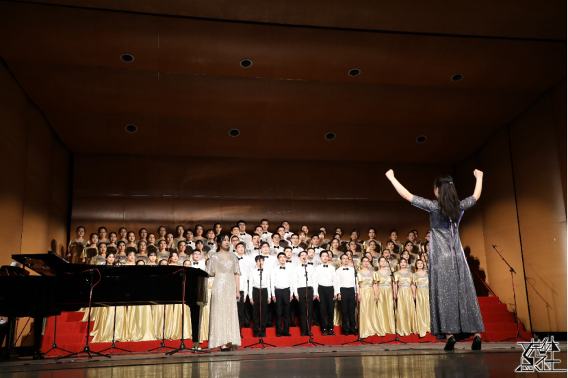在寂静中,响起教育学院2020级研究生李清煜的“百灵鸟独唱”,婉转动听的歌声中,一曲深情的《我爱你中国》就此展开。大家仔细聆听着钢琴伴奏与2019级本科生张雨欣敲击的鼓点,双眼有神地注视着指挥。先是柔美的女声渐起,再是浑厚的男声渐入,各个声部此起彼伏,相互配合,交相辉映,在空气中混合成美妙动听的旋律,时而悠扬,时而活泼,直到结尾声音渐强音调渐高,最后以一句饱含深情的“我的母亲——我的祖国——”完美收尾,台下响起热烈的掌声。