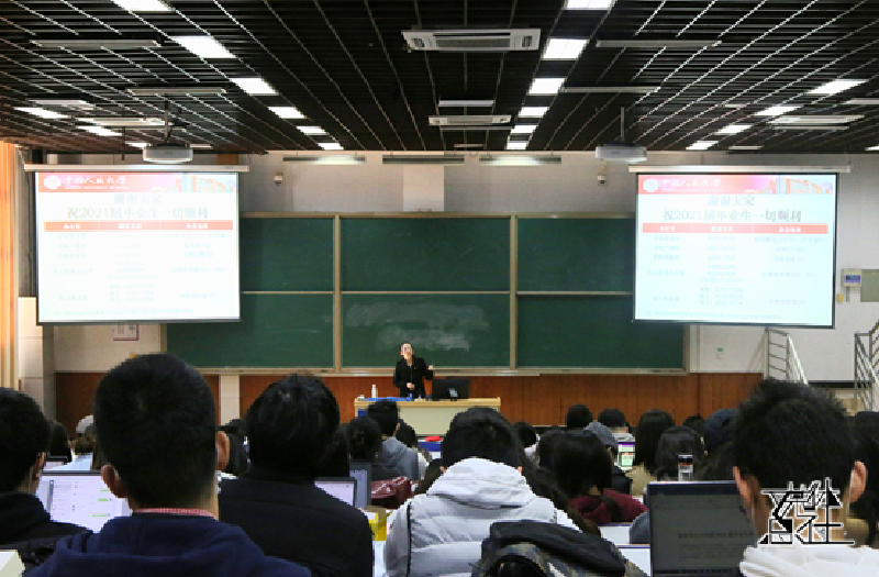 最后,唐颖老师向各位毕业生们叮嘱了面试和简历撰写的细节问题。唐颖老师结合自身的工作经验,向学生们分享了许多求职小妙招,她用幽默的语言和生动的案例让毕业生们对求职过程中可能遇到的各种情况有了更深刻的认识。