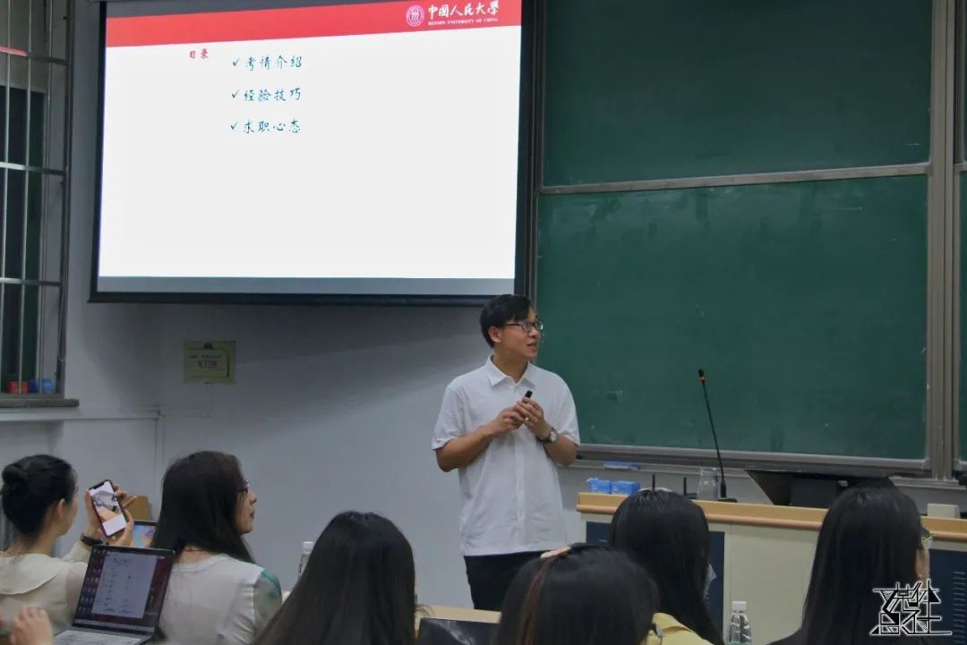 她的分享从认清自身的定位出发,介绍了央企国企的户口、薪资、晋升空间、培训体系、福利待遇等方面的优势,认为应该找到契合自身需求的岗位。接着她在信息获取、日常实习、暑假实习、简历投递、笔试面试等方面提出了自己的建议。师姐特别强调了简历诚意和信息匹配的重要性,并提出了“国企央企可以和公务员、事业单位等同时准备,考核形式相差不大”的观点,对大家的未来规划有着很强的启示作用。