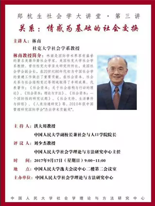 主 讲 人: 林南(杜克大学社会学系教授)
