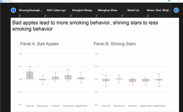之后,Conley教授介绍了同伴效应(Peer Effects)的基因研究,通过使用来自全国青少年到成人健康纵向研究(Add Health)的5500名青少年的数据来以识别吸烟行为的同伴效应。利用基因组学的方法,可以控制传统的同伴效应研究中的选择性、场景效应和反射效应。分析结果表明,朋友之间的基因具有相关性。第二个例子是对家庭效应的估计,即父母的关注或在孩子人力资本上的投入会改变孩子间的先天差异。第三个研究则是关于基因与环境的交互作用,这一研究着眼于环境因素在多大程度上改变了遗传风险和吸烟行为之间的联系。通过对越战时期的征兵数据分析,发现具有高吸烟遗传倾向的退伍军人更有可能成为经常性的吸烟者,并且在老年时被诊断患癌症或高血压的风险更高。战后上过大学的高风险退伍军人的吸烟行为明显减弱,这表明退伍军人在服役后接受学校教育的收益减少了成年后的烟草消费。在讲座的最后,Conley教授强调社会学家应当更多关注基因研究,并且提出了社会学家之所以要关注基因问题的重要原因。