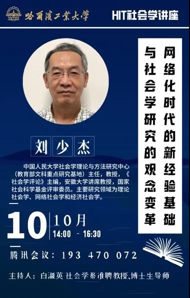 讲座预告| 刘少杰:网络化时代的新经验基础与社会学研究的观念变革