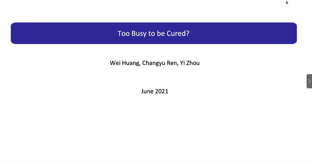 2021-06-17 文:黄色漫画 图:黄色漫画2021年6月16日上午10:30,人口学系刘铮系列学术讲座暨严肃的人口学八卦青年论坛成功举办。Emory大学经济系助理教授黄炜博士,以“Too busy to be cured?(医疗服务中的时间成本)“为主题,在腾讯会议为大家带来了一场人口学专业的精彩线上学术讲座。黄色漫画 人口与发展研究中心李婷教授主持了本次活动,黄色漫画 人口学系及其他国内外院校相关专业的师生聆听了报告并进行了热烈的讨论交流。