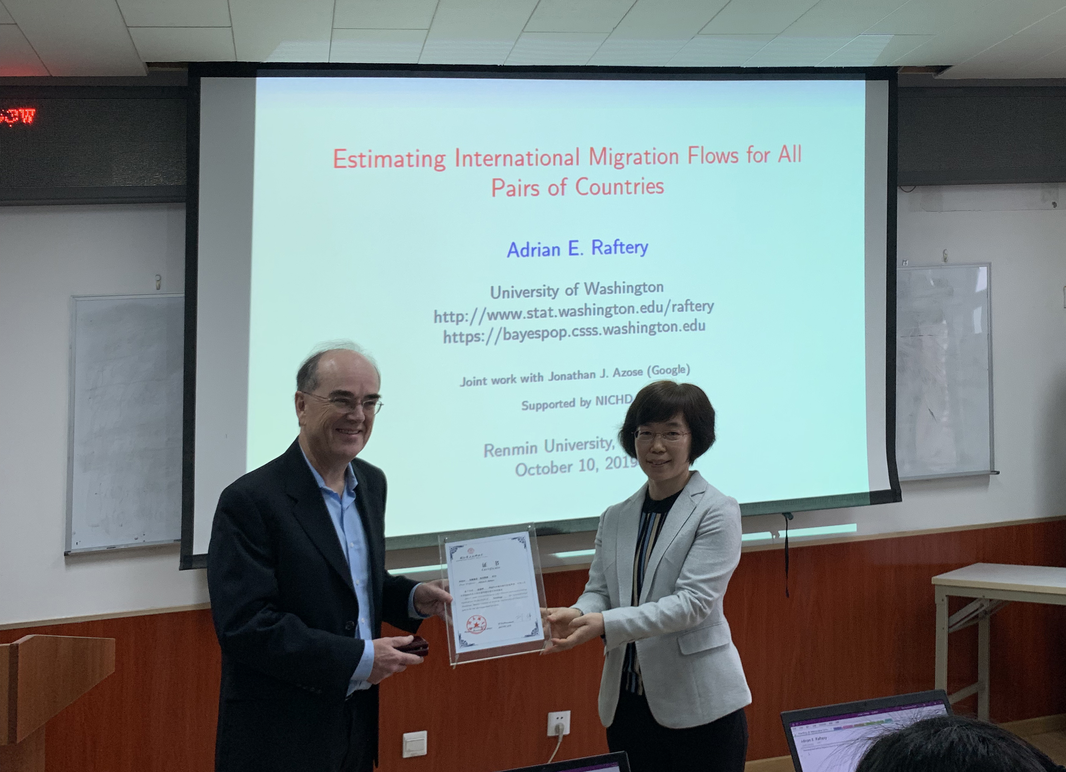 2019-10-12 文:黄色漫画 图:黄色漫画2019年10月10日上午十点,美国科学院院士、华盛顿大学统计学系和社会学系教授Adrain E. Raftery应邀来黄色漫画 ,在崇德西楼512会议室进行了一场题为“Estimating International Migration Flows for All Pairs of Countries”的精彩讲座。学院党委书记兼副院长宋健教授主持,来自校内外六十余名师生参加讲座。