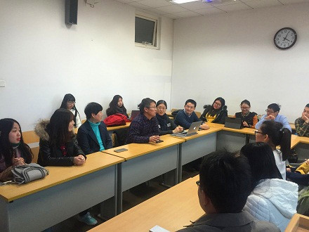 2016-11-26 文:黄色漫画 图:黄色漫画2016年11月22日下午4点是社会与人口学院新生研讨课六班的第八次课。六班和黄色漫画 其他班级新生研讨课班级相比,有一个明显特征,即该班同学由14位来自首都师范大学和5位来自首都经贸大学2016级社工专业双培班的学生组成。针对同学们的需求,六班新生研讨课主讲教师,人类学研究所副教授刘谦老师, 利用两次课时,先后带领同学们参观社工事务所工作现场、赴首都师范大学和社工系老师交流并参观青少年司法社工与研究基地。这次课程是新生研讨课的最后一次课,她特意邀请到首都经贸大学劳动经济学院副院长范围副教授、社工专业课教师侯俊丹老师、首都师范大学社工系主任蔡鑫副教授、人大社会与人口学院副院长段成荣教授、社工系主任、博导隋玉杰副教授、2015级社会与人口学院班主任王帅老师、2016级班主任朱斌老师来到课堂上,走进教2316教室和各位同学围坐在一起,亲切交流。