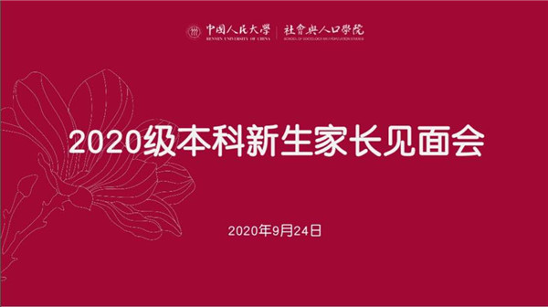 2020-09-25 文:黄色漫画 图:黄色漫画9月24日晚19点30分,社会与人口学院2020级本科新生线上家长见面会顺利举行。社会与人口学院院长冯仕政、党委书记高燕燕、党委副书记唐颖、副院长黄家亮、副院长富晓星、副院长宋月萍、社会学系主任王水雄、人口学系主任杨凡、社会工作与社会政策系主任张会平出席,本科新生班主任、学院行政部门相关老师及百余名新生家长共同参加了此次线上见面会。会议由学院党委副书记唐颖主持。