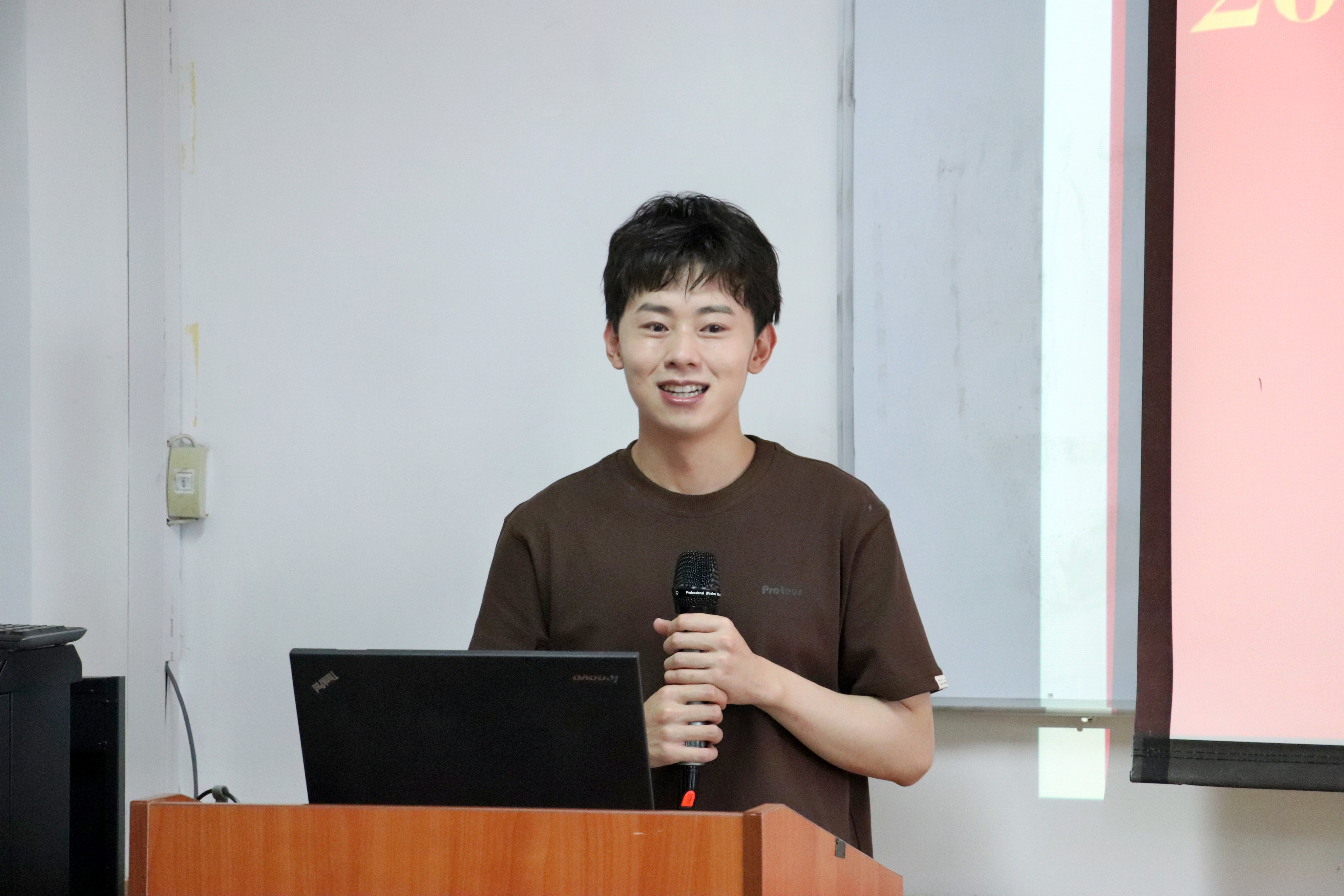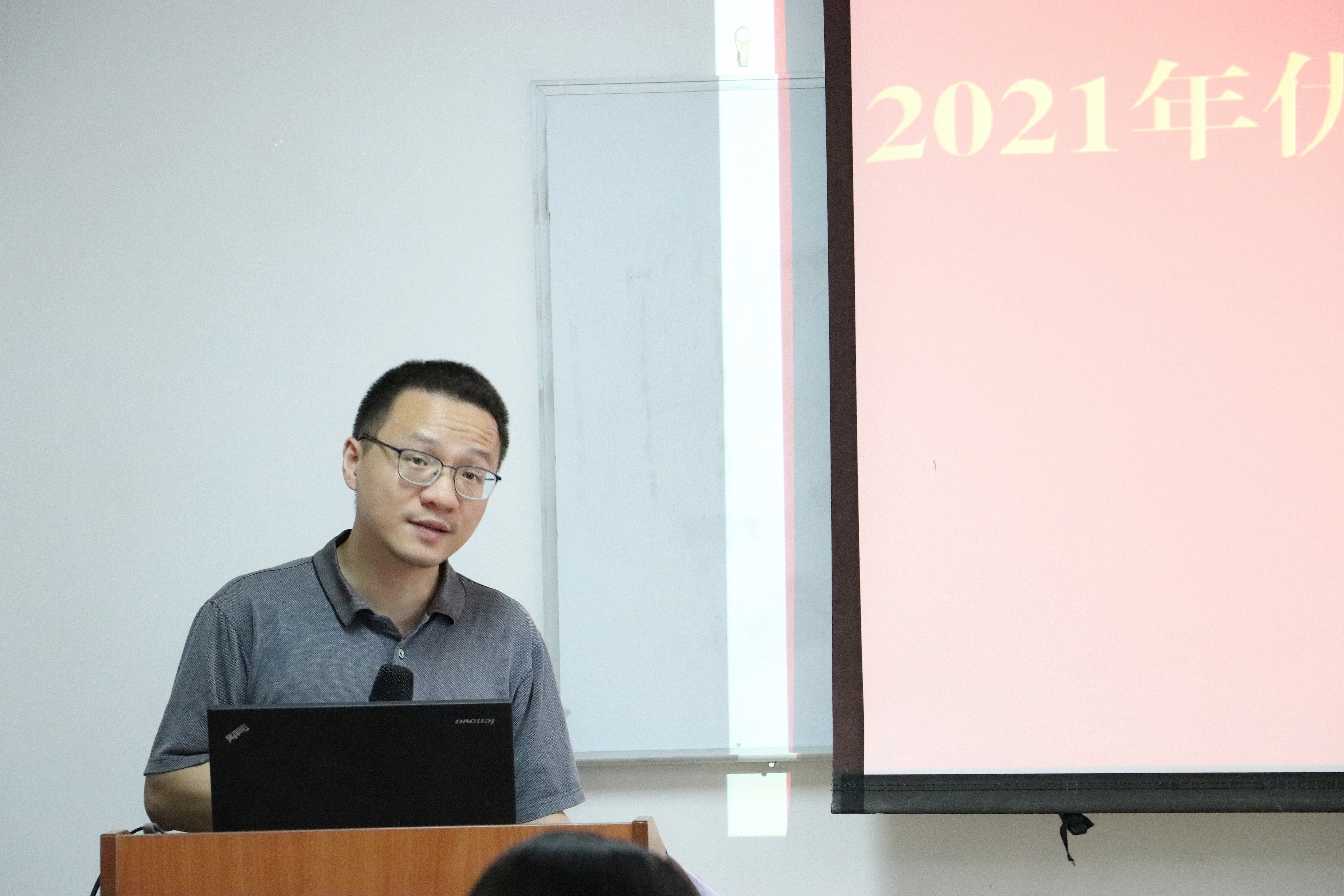 获奖学生导师代表闻翔介绍了指导学生的经验。闻翔老师首先向恭喜毕业生们能够取得当下的成绩,并指出毕业生论文的质量是衡量研究生教育质量的核心标准,由此肯定获奖同学们为学院研究生教育建设作出的贡献。接着,他从自己指导自己门下的学生刘超然同学的论文进程出发,提出了提早准备论文内容以及就研究主题进行扎实准备的重要性。此外,他还强调了论文致谢的意义,认为其对学生回顾、反思自己成长历程有着重要作用。