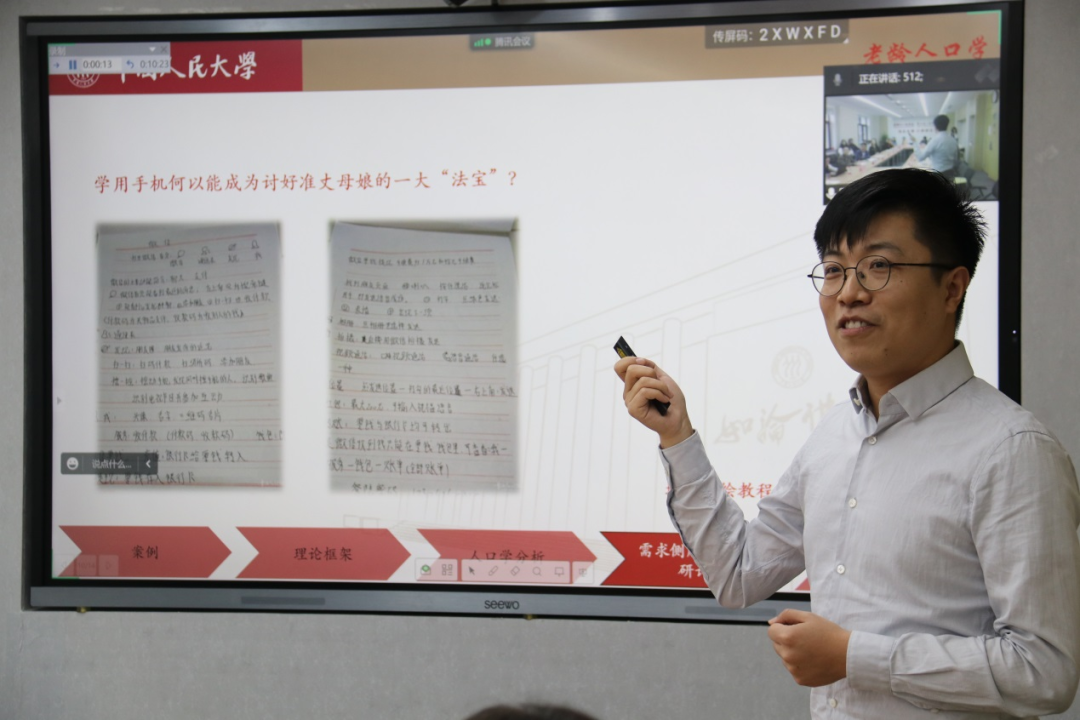 李龙讲授了主题为“解开老年数字鸿沟的人口学之谜”的课程。他以热播剧中教学智能手机应用的案例来引出讲授主题,重点讲授老年数字鸿沟理论框架、老年人力资本存量测量以及需求侧和供给侧齐发力助老年人跨越数字鸿沟的可能性,最后以“赵丽蓉老师之问”启发学生深入思考。