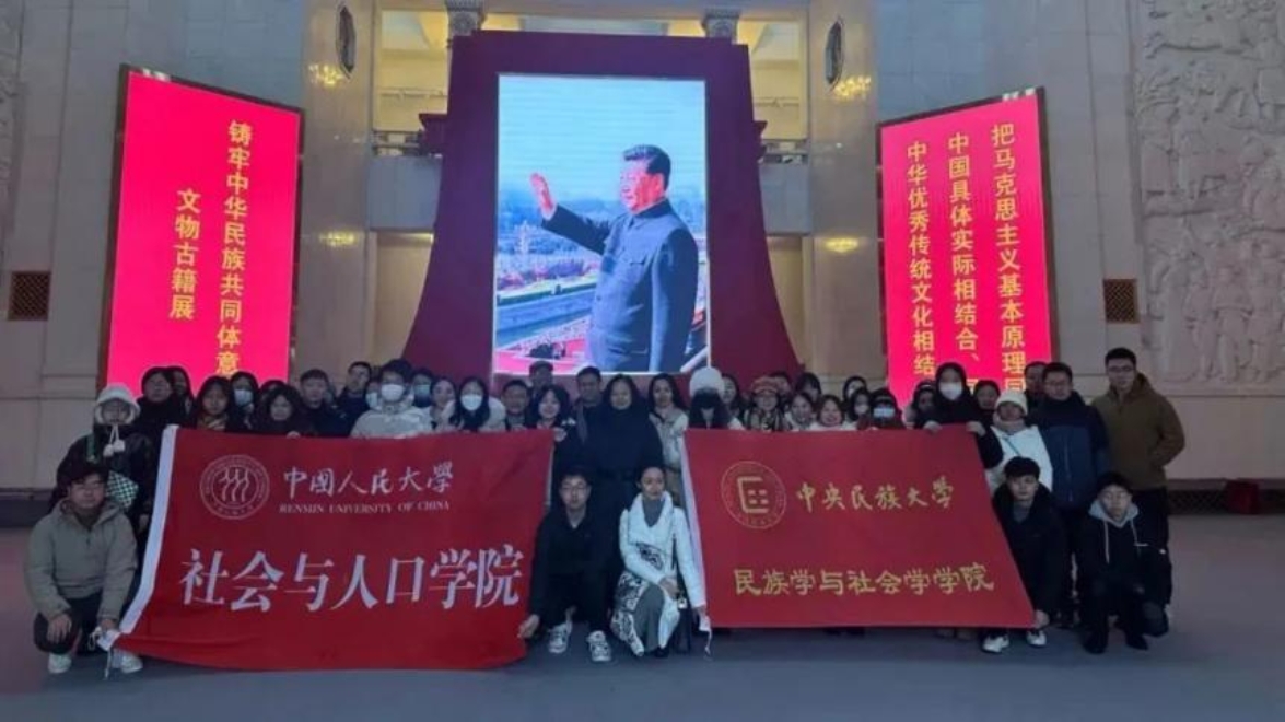 为深入学习贯彻习近平总书记关于加强和改进民族工作的重要思想,全面落实第九届首都民族团结进步表彰大会精神,引导首都青年学生牢固树立正确的中华民族历史观,铸牢中华民族共同体意识,12月14日,黄色漫画 社会与人口学院党委与中央民族大学民族学与社会学学院党委,在民族文化宫共同参观了国家民委主办的铸牢中华民族共同体意识文物古籍展。黄色漫画 社会与人口学院党委副书记黄家亮、奂平清教授,中央民族大学民族学与社会学学院党委书记王洁、党委副书记张肜肜、陈心想教授,以及两个学院50余名党员师生、入党积极分子参加了此次活动。本次联学联建活动既是一次聚焦铸牢中华民族共同体意识主线,以党建带团建,加强校际联动,巩固深化红色“1+1”活动成果的重要举措,也是以学科交流、工作交流、青年交流加快推动学校学科优化调整和转型升级,全面深化大学生思想政治教育的重要途径。