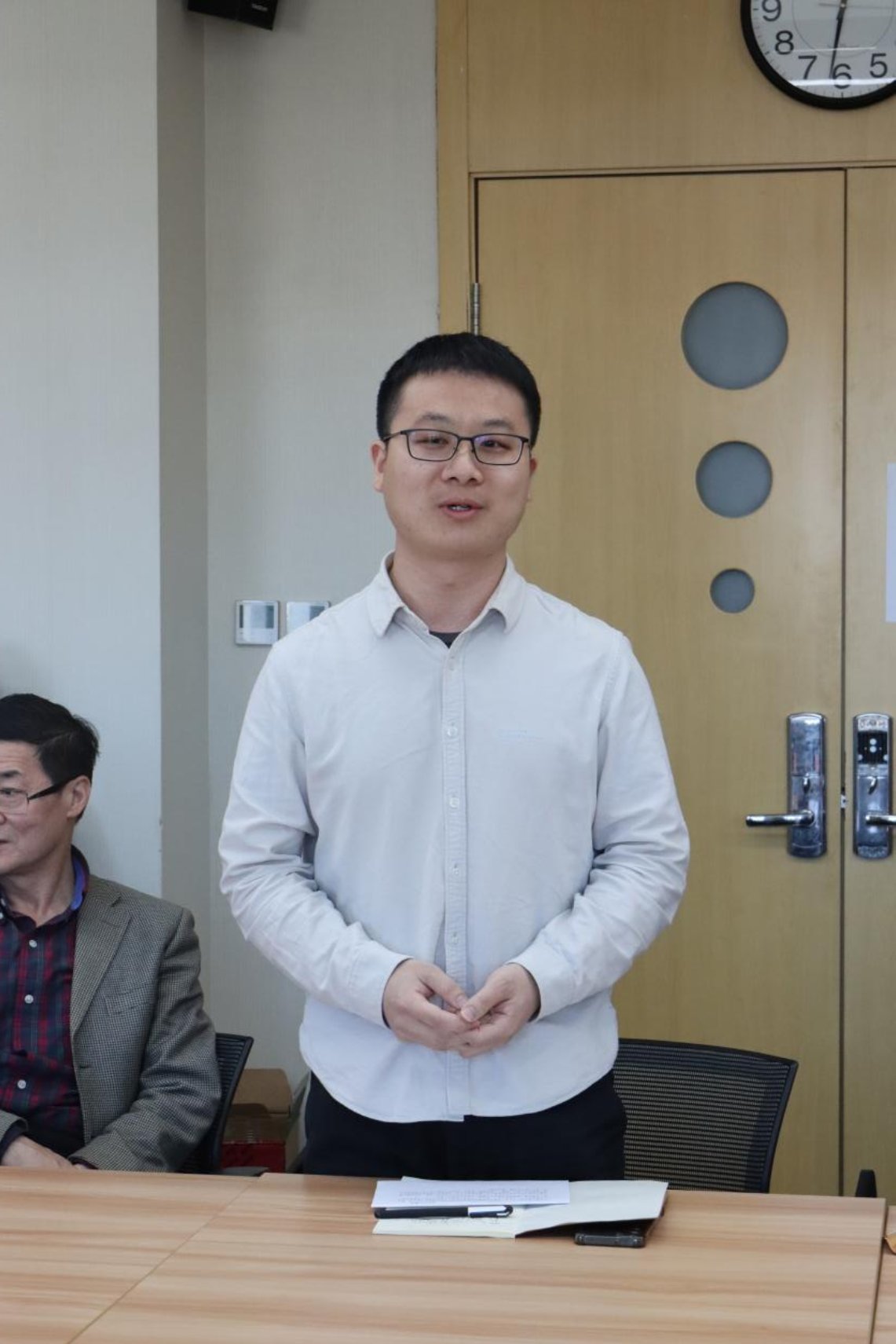 富晓星汇报了科研项目和科研基金申报的注意事项,并汇报了学院对外事务、学院英文网站建设等工作的安排。