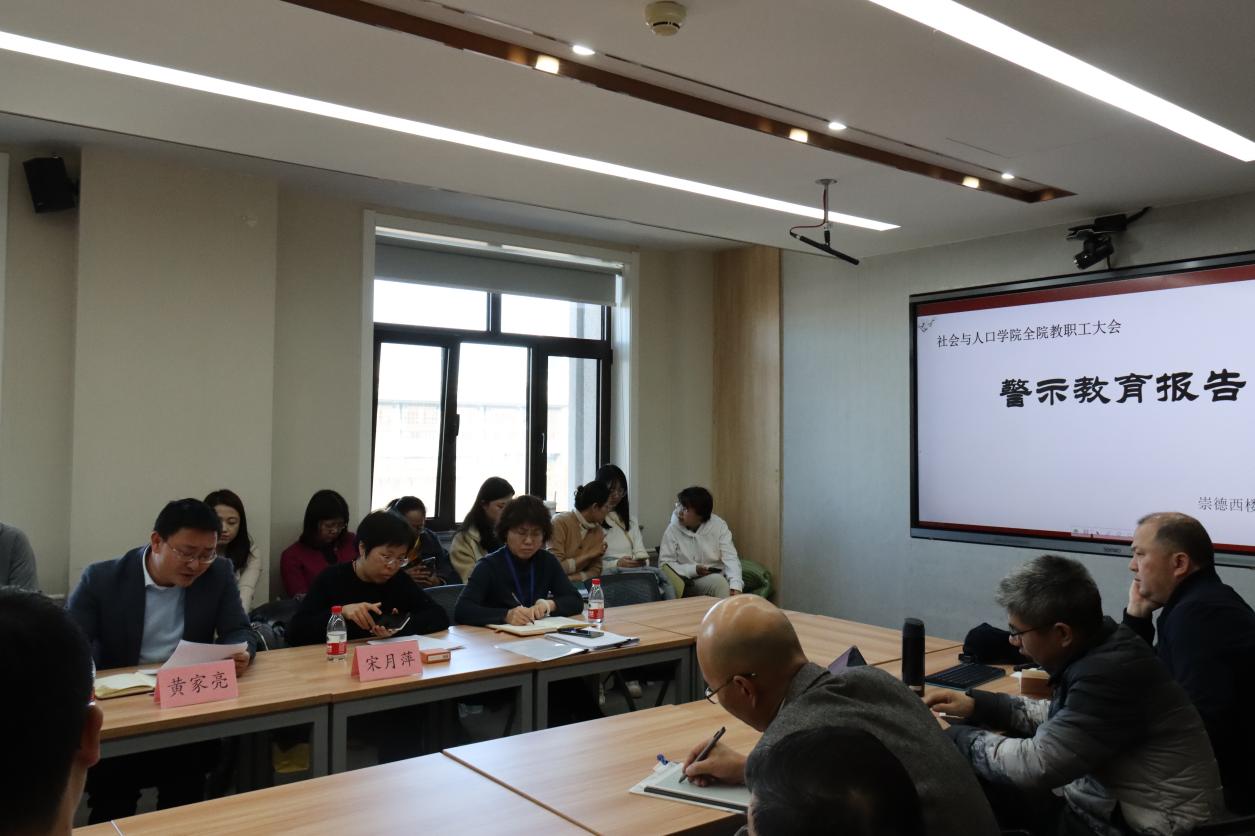 2024-03-03 文:黄色漫画 图:黄色漫画3月1日,社会与人口学院召开警示教育大会。学院党委书记孙权主持,学院党委副书记、纪委书记黄家亮主讲。社会与人口学院全体教职工参加会议。