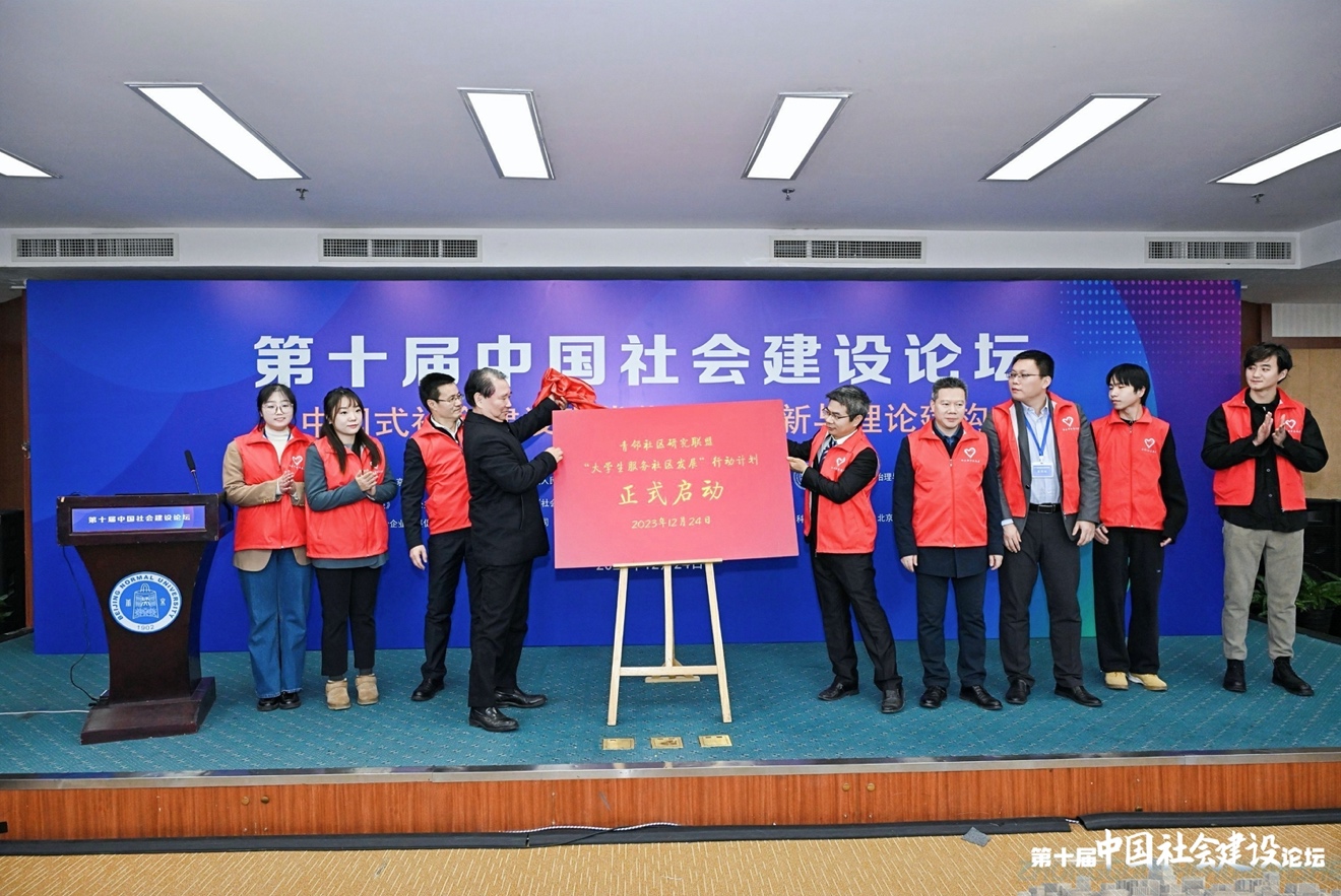 在上午的成果发布环节,基地成员李丁副教授与社会学系博士生周子韵、硕士生刘芷桐等和其他青邻计划代表共同发布了“大学生服务社区发展”行动计划。该计划将培育一个社区研究联盟、一批高校社区服务类学生社团,促进大学校园与城市社区融合,以城市为校园,以社区为课本,将社会学田野课堂拉回身边,贯彻全程,提高学生的思想力、行动力、完成力、领导力,为社区发展提供持续而稳定的专业支持,“重建附近”,重建附近的社群与社区,推动中国特色的新型城乡现代社区建设。目前行动计划包括青邻社团计划、青邻培优计划、青邻导师计划等三个子项目,青邻慈善基金将在2024年向社会公开募款。计划已得到首都二十余位专家学者联署支持,未来将覆盖全国。