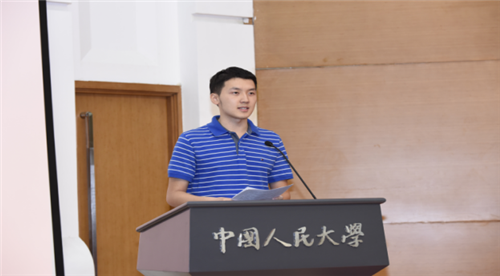 在校生代表、2015级本科生娄嘉亮发言。他代表全体在校学生,对曾经给予师弟师妹以温暖和帮助的毕业同学们表达了衷心的感谢和深深的不舍,祝愿各位师兄师姐实现自己的人生理想和价值。