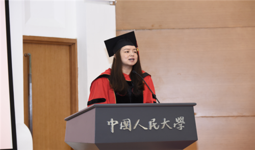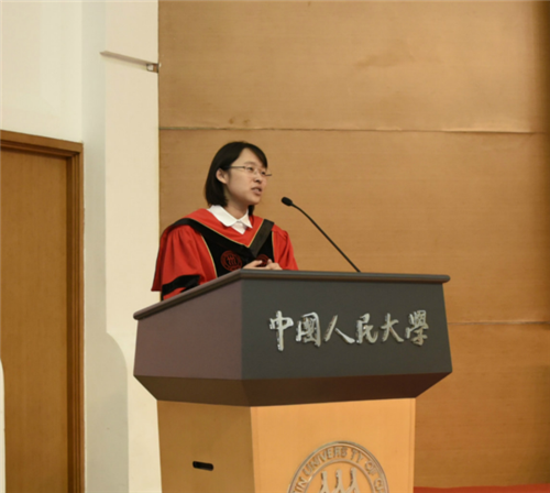 毕业生代表、2013级本科生郑阳发言。她回忆了同学们相伴学习和生活的美好时光,对学校、学院、老师与家长们表达了由衷的感谢,并祝福全体毕业生前程似锦、万事胜意。