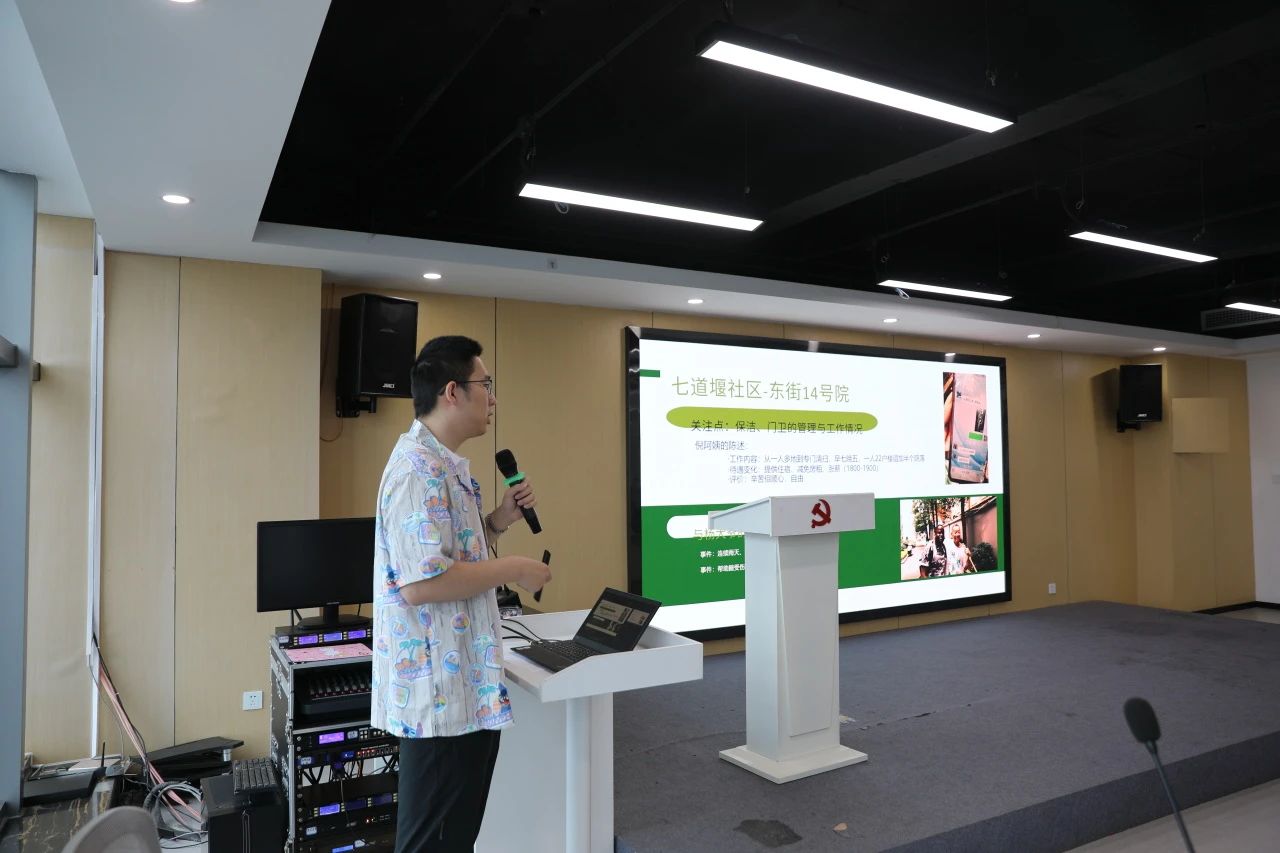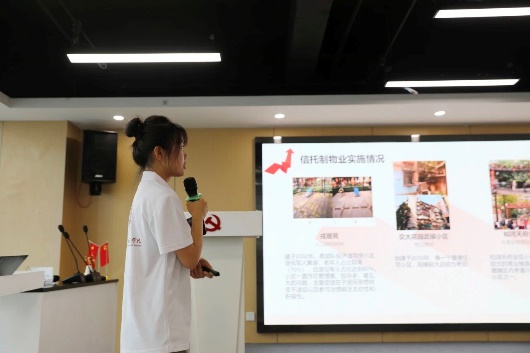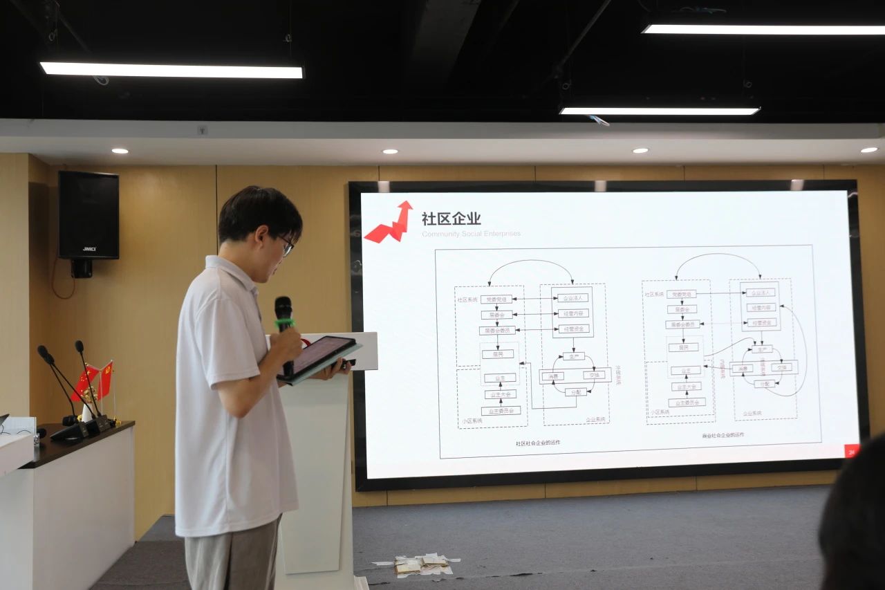 第三组成员围绕着“信托制物业、社区社会企业、党建引领下的信义治理与组织动员” 三个方面介绍了这几天的调研情况。首先通过与传统的包干制物业对比介绍了信托制物业的运行逻辑,并以数据和图片的形式展现了信托制物业的实施效果;其次从企业收益与社会责任之间的张力、与商业企业对比下来介绍了社区社会企业,并结合不同的主体对社区社会企业的不同态度去分析社区社会企业的实际推行过程;最后介绍了党建引领下的信义治理与组织动员,指出了党建引领信义治理是通过外部社会资本建构来实行组织联动、通过内部社会资本动员来实现组织嵌入、通过业委会作为“结构洞”来实现组织控制、通过党建引领的内外发展来实现组织更新与扩散,还提出一些针对党建引领在信义治理方面的一些疑惑,表明了未来的调研方向。