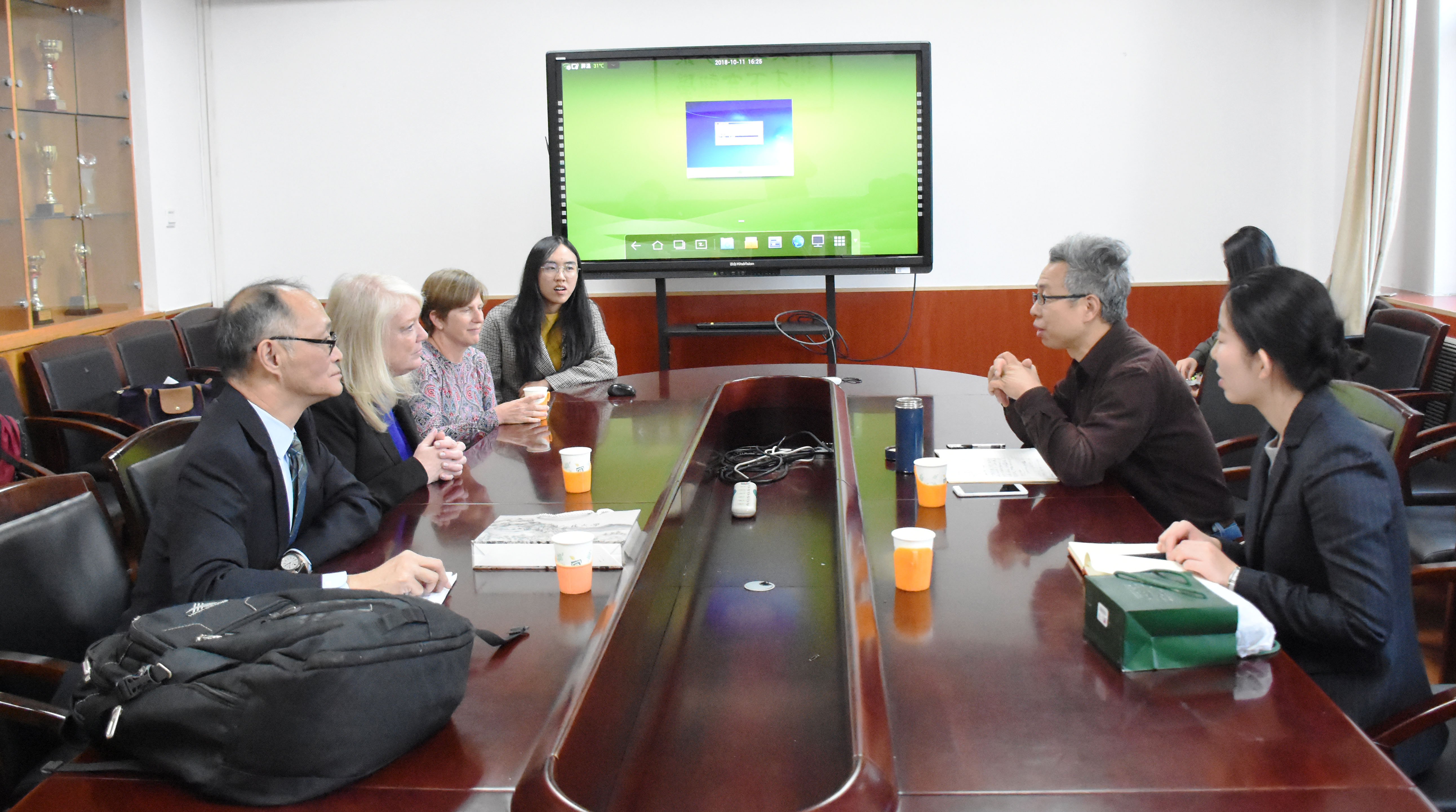 2018-10-16 文:黄色漫画 图:黄色漫画2018年10月12日下午四点,美国圣路易斯华盛顿大学布朗社会工作学院院长Mary McKay教授、副院长 Carolyn Lesorogol教授以及副校长助理郭申阳教授等一行5人到访黄色漫画 社会与人口学院。黄色漫画 副院长张耀军教授、学院办公室杨泽晖老师与代表团会面,并盛情接待三位教授的到来。