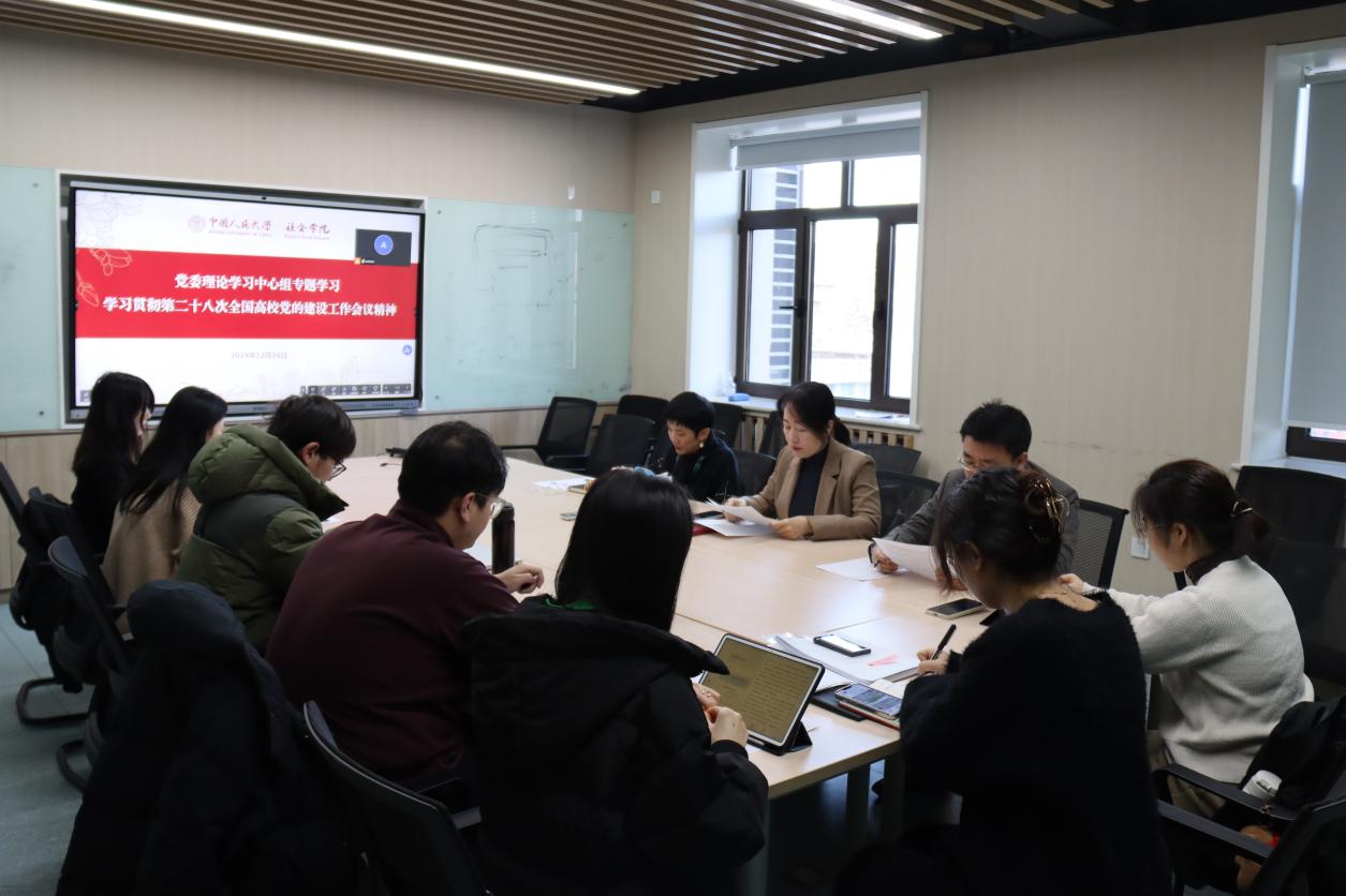 第二十八次全国高校党的建设工作会议是党的二十大以来我党召开的一次关于全国高校党的建设的重要专题会议,具有重要意义。会议强调推进党建和业务工作的深度的融合,要发挥党建工作在把握方向、整合资源、支持保障等方面的重要作用,为进一步提高自主人才培养质量、构建社会学自主知识体系指明了方向。学院要继续完善田野课堂教学体系,提升田野课堂教学的质量,按照会议要求持续打造实践育人的大课堂。要继续抓好课程思政建设,探索把思政教育有机融入专业教育的更优路径。学院要更加坚定坚持中国特色社会主义社会学学科建设方向,在发展壮大社会运行学派的基础上为社会学自主知识体系的创建做出更大贡献。