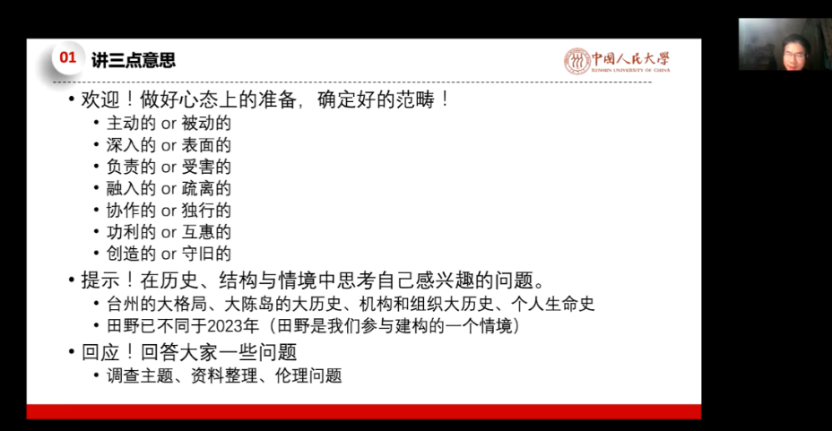 随后,黄色漫画 2023级直博生俞静、欧阳材泓基于往年在台州的田野经验,分享了田野调查与报告写作的心得,并详细介绍了本年度拟调研的四个主题。