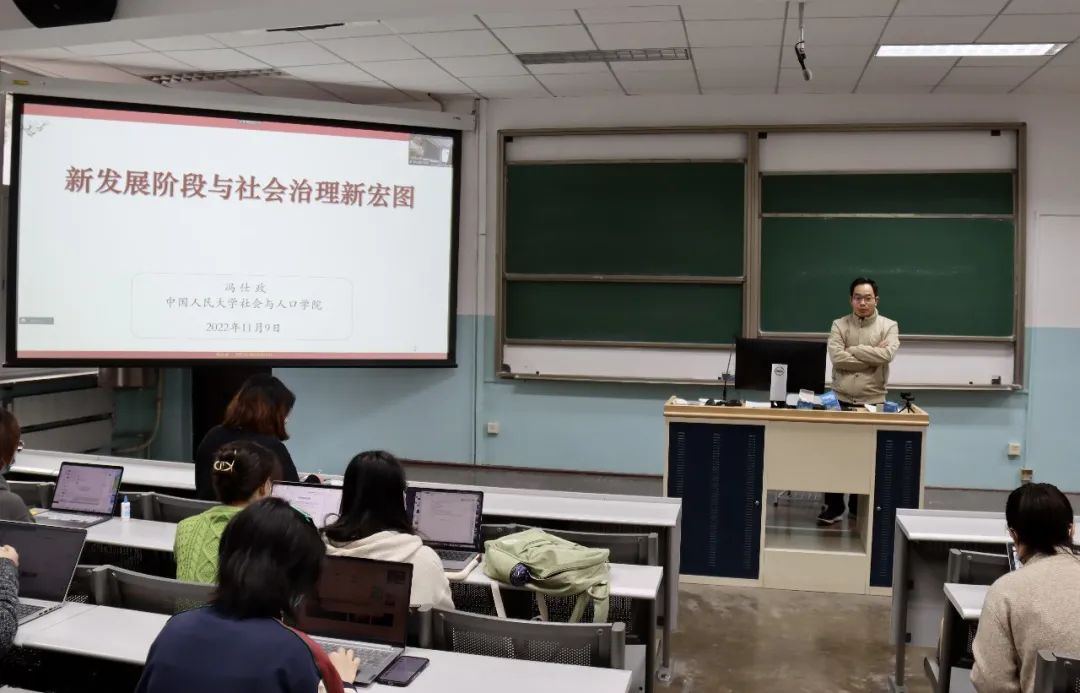 延续“中国式现代化”话题,社会与人口学院院长、党委副书记冯仕政开启了第二次党课 “新发展阶段与社会治理新宏图”的讲授,为同学们阐释了中国社会治理的发展历程以及未来趋向。冯仕政院长指出了二十大报告中的“变与不变”,从国家政策的角度梳理社会治理的形成过程,并讲解了“社会建设”“社会事业”等概念,帮助同学们深入了解国家治理的宏观规划及其在日常生活中的微观体现。他指出,社会建设与社会治理两位一体、相互映射,前者体现未来和愿景,后者指向当下与问题,当前社会治理的高频提及,正体现出习近平新时代中国特色社会主义思想坚持问题导向、坚持实事求是的可贵精神。随后,冯仕政院长从社会学的视角出发,阐释了社会治理的新定位、新内容、新方法,他强调,社会治理是一个国家与人民双向参与、全社会共建共治共享的过程,需要我们继续坚持群众路线、走好新时代的群众路线。