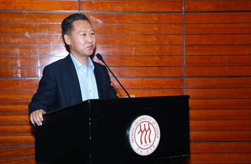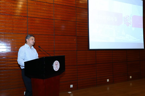 接下来,京东集团党委书记、副总裁龙宝正先生讲话。首先,他对本次“强东杯”知识竞赛表示了充分的肯定,对各个队伍在比赛中的精彩表现、深度交流表示了赞赏。他谈到,这是他第二次参与知识竞赛,今年的活动扩展到了全国的范围,加强了各个高校之间的交流,活动本身具有非常重要的意义。他表示,京东集团及刘强东先生本人将一如既往的支持社会学学科建设,在未来的规划中,将会为更多社会学专业的本科生提供海外游学的机会,帮助同学们开阔视野、增长见识。龙宝正先生的讲话赢得了现场热烈的掌声。
