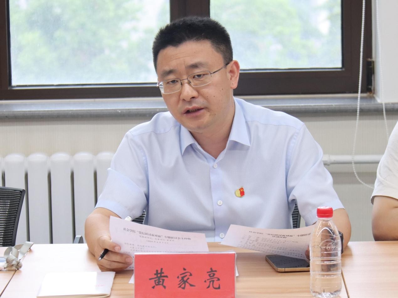 黄家亮对发言内容进行点评。他表示,各支部同志结合工作、学习、生活实际分享了学习《中国共产党纪律处分条例》的感悟,对日常生活中可能存在的问题进行剖析,并提出了预防问题、解决问题的对策措施,会前准备充分,研讨效果良好。他提到,开展党纪学习教育,是对党的政治纪律和政治规矩学习的强化,是进一步夯实理论基础、铸牢对党忠诚的坚实保障,也是提升自我修养、提升战斗力和凝聚力的重要举措。希望各支部继续组织全体党员认真学习《中国共产党纪律处分条例》,用好纪律这把管党治党的“戒尺”,自觉用党规党纪校正思想和行动。